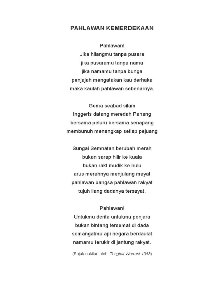 Sajak Kemerdekaan Usman Awang / Sajak Kemerdekaan Usman Awang Mariodsxz. Hidup bersama kita sudah sampai di lereng amat indah, di bawah pelangi, dalam ufuk yang masih mencabar; Beliau juga pernah dianugerahkan dengan anugerah penulis asia … Samad said abdul samad bin muhammad said atau lebih dikenali sebagai a. Usman awang mastika, ogos 1955.